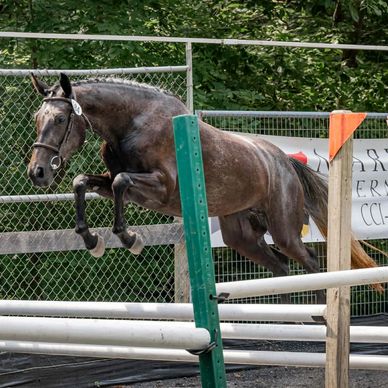 Standing at 15 hands, "Mo" or "Smalls" was sent to us on consignment as her owner has her hands full with children, and not enough time to dedicate to this "hony". Mo was a tough cookie, and while she showed a great deal of potential, she wasn't quite suitable as a resale just yet as her personality can be quite spirited. Bred to be a show jumper, Mo was just too small and with some nudging from our coaches, we created a syndicate to buy Mo for Courtney to campaign since she has quite the track record with small firey honies. Mo competed in a BN event last fall, and is looking at starting at the novice level in the spring of 2023 and will be stepping up to training level by the summer. She is naughty in almost every way, but my goodness can this one jump.